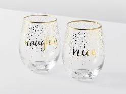 Celebrations Stemless Glass 500ML Set Of 2 Naughty Nice Gift Boxed