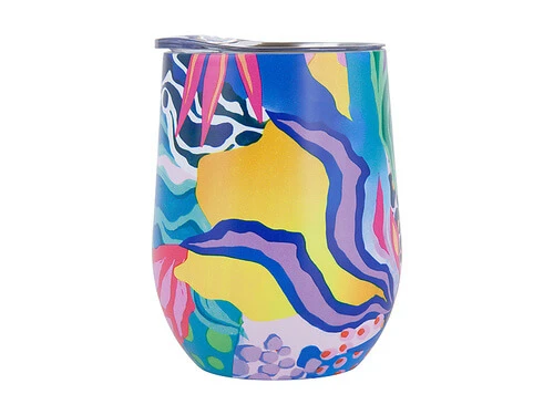 Add some colour to your day with this double-wall insulated tumbler from the Be Fierce collection. Created in collaboration with Brisbane artist Kasey Rainbow, this cheerful tumbler features a design of bright patterns inspired by nature. Perfect for takeaway coffees and picnics, itβs made from quality stainless steel with a matching lid. With a generous 350ml capacity, it keeps contents hot or cold for up to four hours β a great gift idea.