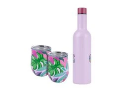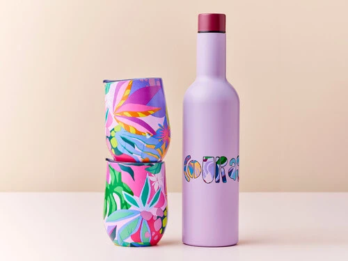 Add some colour to your day with this wine set from the Be Fierce collection. Created in collaboration with Brisbane artist Kasey Rainbow, this cheerful set includes a 750ml leak-proof insulated bottle and two 350ml insulated tumblers. Made from quality double-wall stainless steel, itβs the perfect way to keep your drinks cool for picnics or beach trips. Bright, bold and full of fun, it makes a fun gift idea.