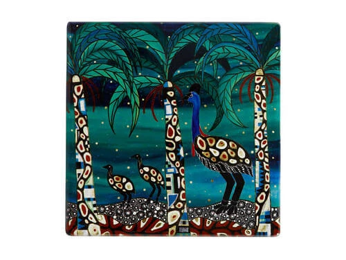 This coaster from the Jagaig-Bana-Wabu (Earth-Water-Rainforest) collection features an original design by Australian artist Melanie Hava. Hava’s Aboriginal and Austrian heritage influence her artwork, with inspiration taken from both the reef and rainforest country of Far North Queensland and Austrian architecture and artists like Gustav Klimt. Each design in the range showcases a stunning combination of flora, fauna and landscapes in a vibrant colour palette.