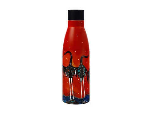 This drink bottle from the Jagaig-Bana-Wabu (Earth-Water-Rainforest) collection features an original design by Australian artist Melanie Hava. Hava’s Aboriginal and Austrian heritage influence her artwork, with inspiration taken from both the reef and rainforest country of Far North Queensland and Austrian architecture and artists like Gustav Klimt. Each design in the range showcases a stunning combination of flora, fauna and landscapes in a vibrant colour palette.