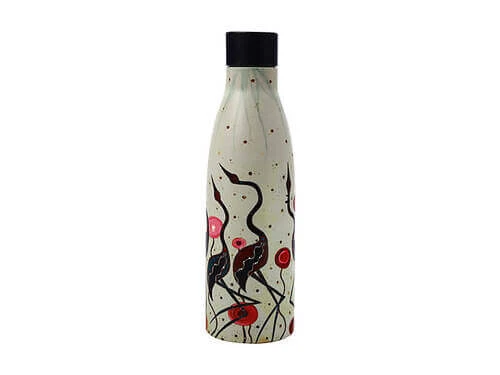 This drink bottle from the Jagaig-Bana-Wabu (Earth-Water-Rainforest) collection features an original design by Australian artist Melanie Hava. Hava’s Aboriginal and Austrian heritage influence her artwork, with inspiration taken from both the reef and rainforest country of Far North Queensland and Austrian architecture and artists like Gustav Klimt. Each design in the range showcases a stunning combination of flora, fauna and landscapes in a vibrant colour palette.