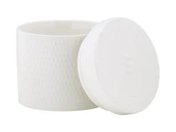 This set of three White Basics Diamonds 600ml canisters is stylish storage made easy. Made from classic white porcelain, these cylindrical canisters feature an elegant diamond-textured surface. With a 600ml capacity and matching lids, they’re the perfect way to store your kitchen essentials. Beautifully packaged, these canisters make a thoughtful gift.
